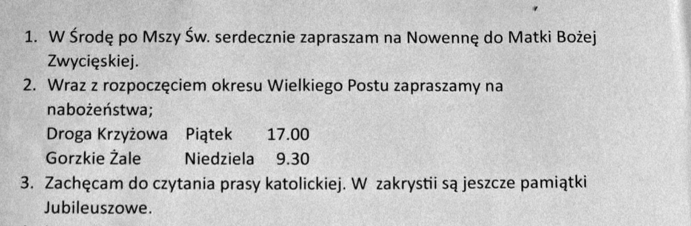 Ogłoszenia parafialne - 08.03.2026